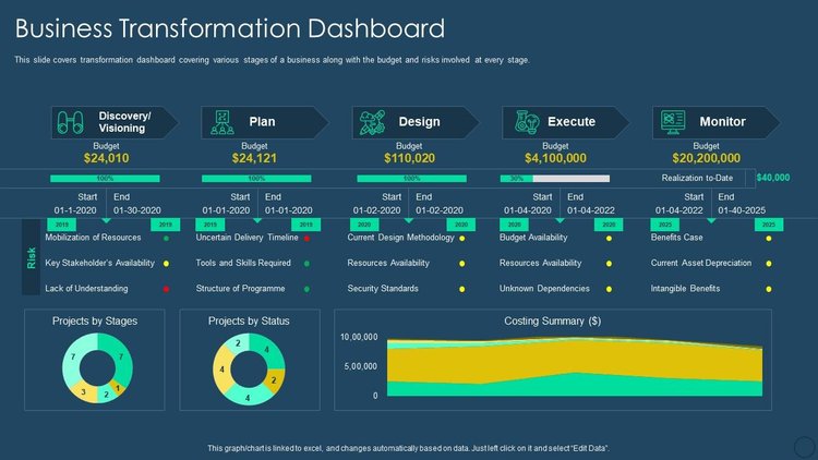 Example: Implementing a business transformation dashboard to monitor KPIs such as operational efficiency and change adoption rate, leading to more effective process optimizations and faster identification of potential inefficiencies.